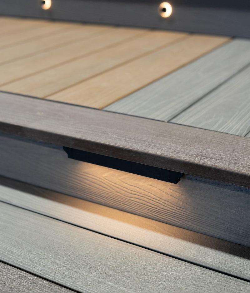 Illuminate hardscapes with the BOLD Edge 7 Neat undercap light. Sleek, 7″ design without a bracket, perfect for decking with a partially hidden light source.